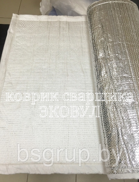 Теплоизоляционные маты для проведения сварочных работ 1800x960x8 мм, сверху кремнеземная ткань, снизу фольгированная подложка, внутри негорючий теплоизоляционный наполнитель.
